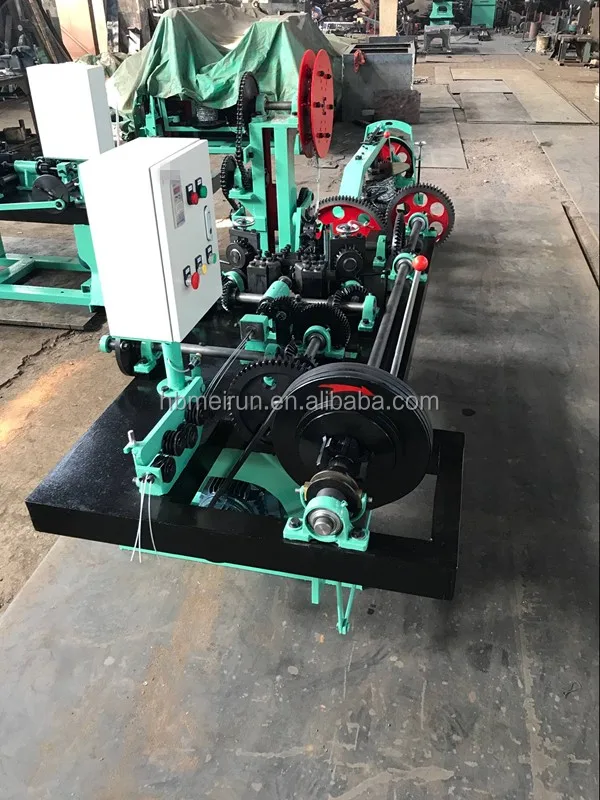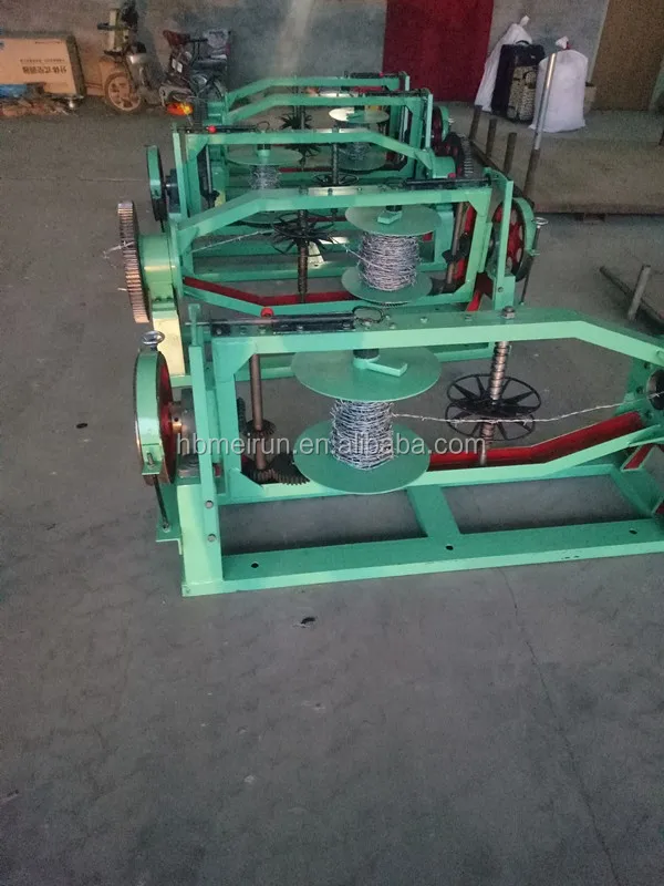 The machine is of horizontal design, double-strand barbed wire machine and received by wire twisted around the wire connecting two parts of the composition, assembled together at the middle. And supporting four wire tray to put the machine to work to coordinate the various components, the action level machine is mainly used for the production of a variety of multi-strand barbed wire mesh machine, the use of the material should be consistent with stable, flexible and reliable operation.